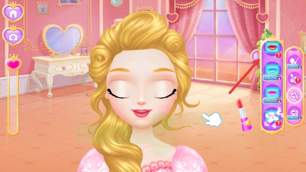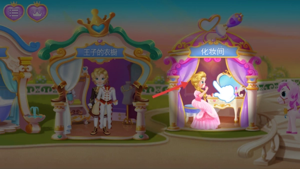 公主装扮的玩法是这样的:先从服饰库里挑选一条公主裙,接着搭配上风格一致的头饰、项链和鞋子,最后给公主涂上淡淡的腮红与口红,就能打造出甜美的公主形象啦。