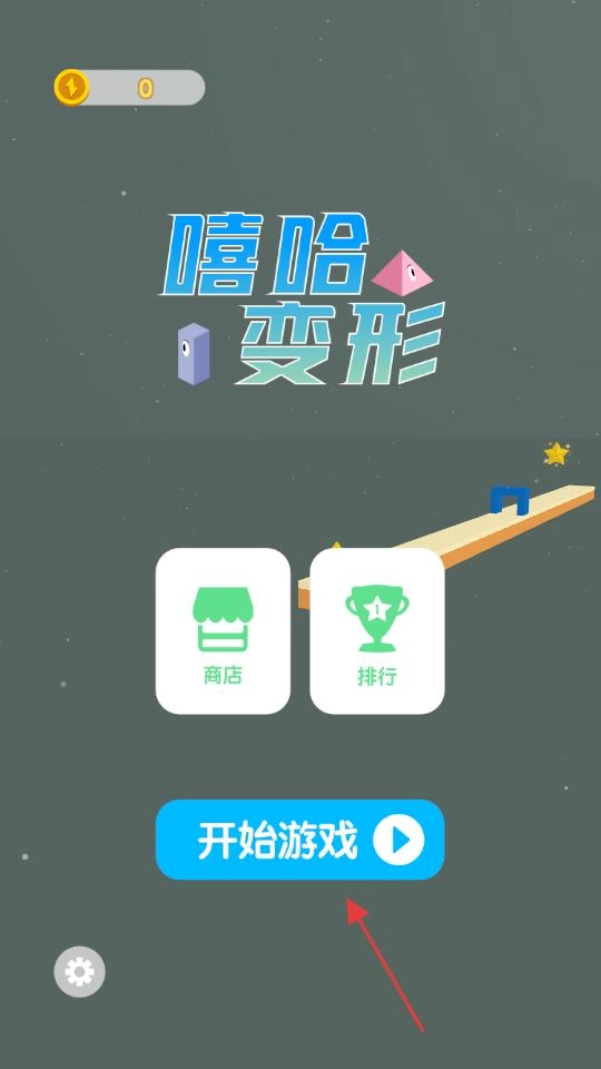 进入主界面后,映入眼帘的是“嘻哈变形”的标题以及相关功能按钮,点击蓝色的“开始游戏”按钮,即可进入游戏场景,准备操控变形物体迎接挑战,开启这段充满趣味的变形冒险旅程。