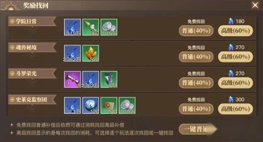 如果如果,实在是几乎没有休闲时间的玩家们,那么奖励找回了解一下。