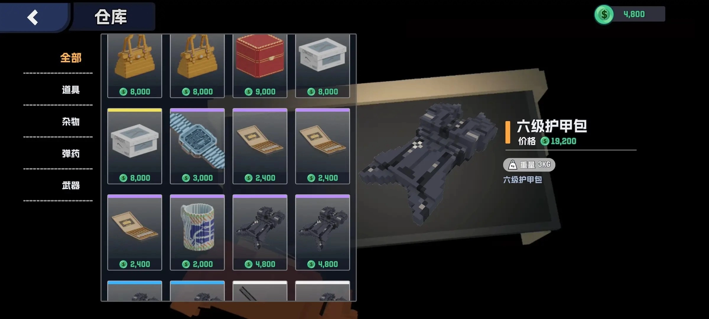 回到安全屋后,你能在仓库里查看这次行动带回来的货物。