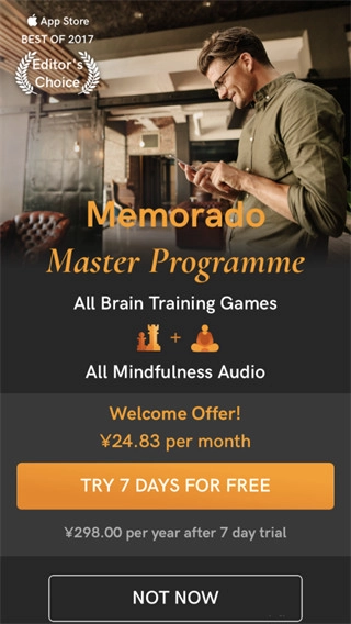 你完全能够免费使用。不过,要是你希望进步速度提升74%(这是平均值),我们建议你选择Memorado高级版。在你成为高级会员的这段时间里,高级版会为你提供真正个性化且每日更新的训练计划;这些训练都经过了优化,能让训练效果达到最好。另外,高级版还能让你不受限制地使用所有游戏、测试以及数据。