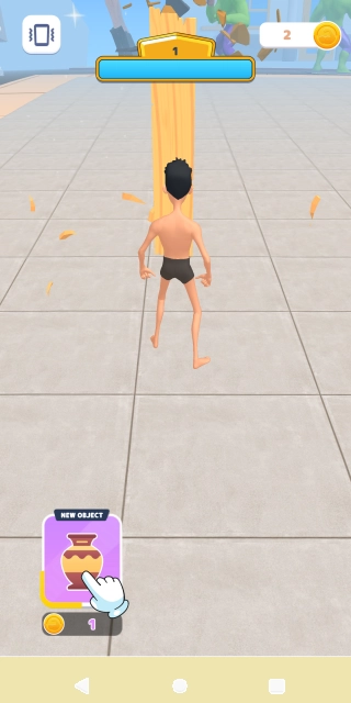 2. 就像下图展示的那样,当进入第一阶段的挑战时,玩家得快速点击屏幕来为拳头积蓄力量。之后松开手指,角色就会对面前的物体发起攻击。