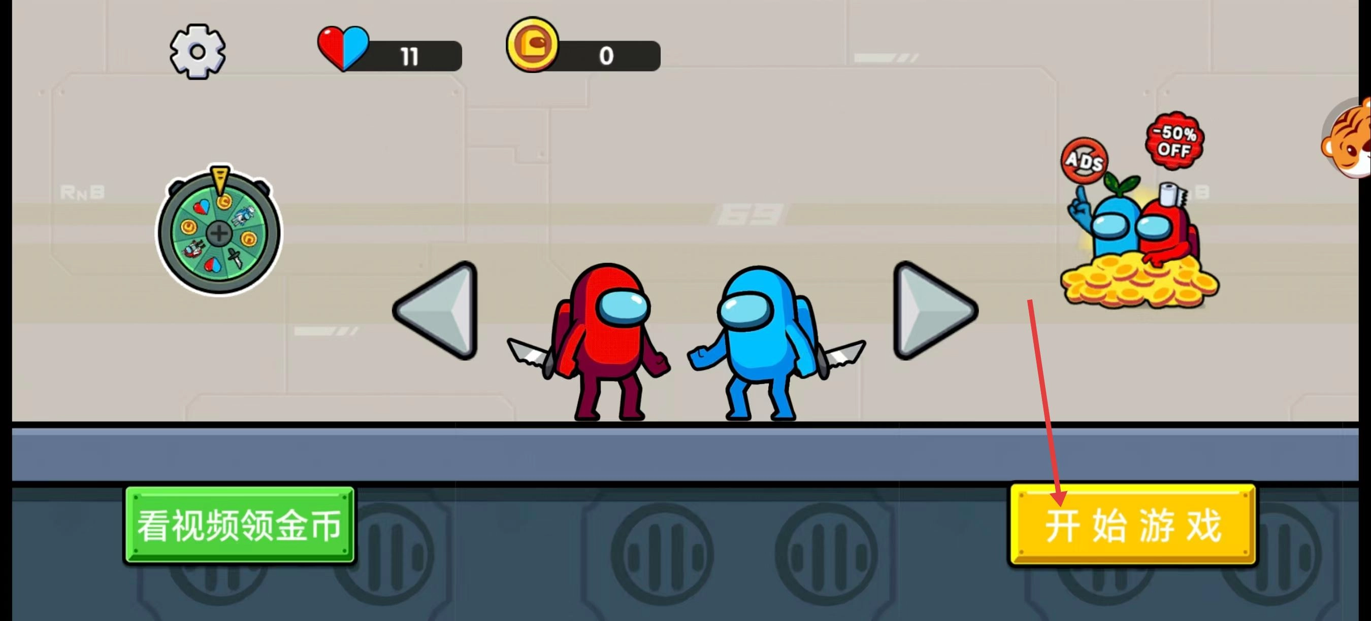 打开特工突围游戏,进入初始界面后,能看到红色与蓝色的小人角色,点击开始游戏按钮,即可进入关卡开启冒险之旅。