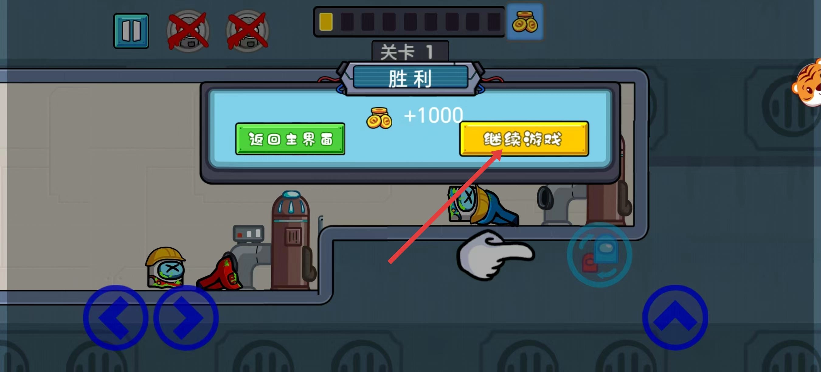 当你成功通过关卡挑战后,屏幕会弹出胜利界面,同时你将获得1000金币的奖励。此时只需点击“继续游戏”按钮,就能开启下一段游戏内容,继续你的冒险之旅。