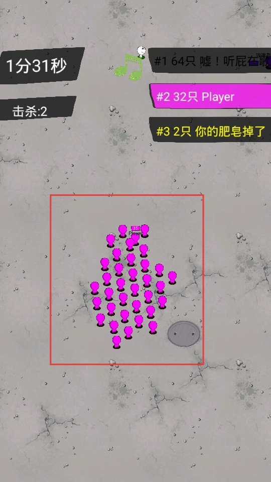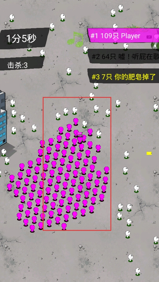 控制粉色小人在地图上移动,靠近白色小人并将其吞噬,以此让自己的队伍持续壮大,同时要注意避开其他规模较大的队伍。