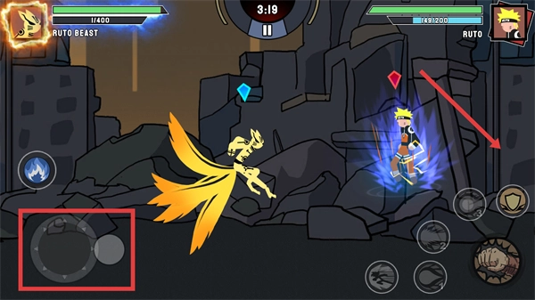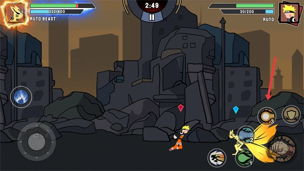 1、操控【左下角的方向轮盘】来移动【RUTO-BEAST】,靠近敌方即可开启战斗。