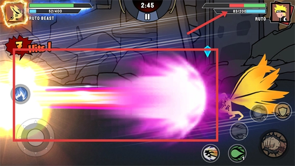 3、当触发【3-Hits!】连击效果后,紧接着点击【左侧的蓝色技能图标】来释放远程攻击,以此对敌方保持持续的压制态势。
