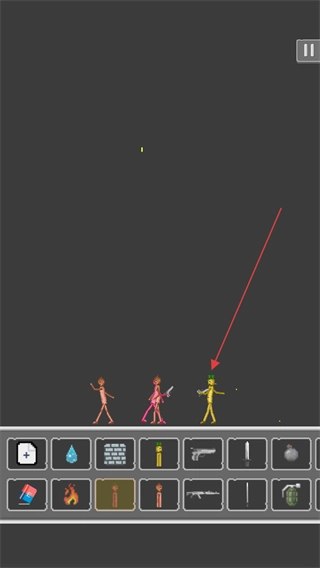 3、先选中下方的人物或物品,接着点击上方的黑色区域完成放置操作。放置完成后,人物会自主移动,并且能够利用地面上的物品。