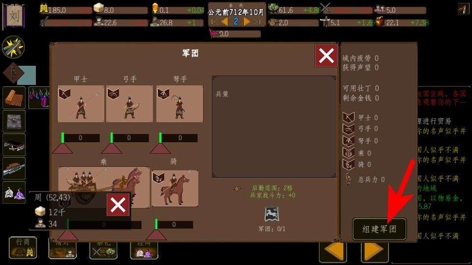 2、找到带有箭头标注的功能选项,点击该选项启动军团组建流程。这是提升战力的基础操作,后续按照系统提示完成操作即可。