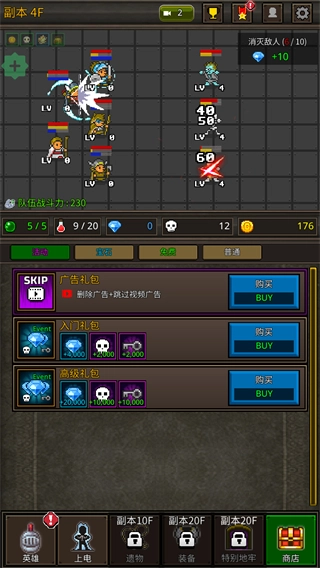 4、像素风格的战斗特效简洁有力,随着英雄战力的提升,清怪效率的质变会带来强烈的成就感,让放置养成玩法不再枯燥。