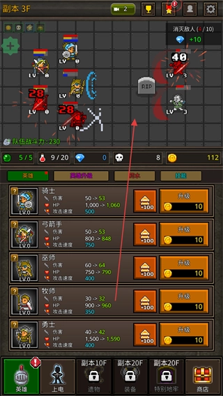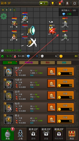 3、进入副本3F,指挥英雄对敌方单位发起攻击,以削减其血量。
