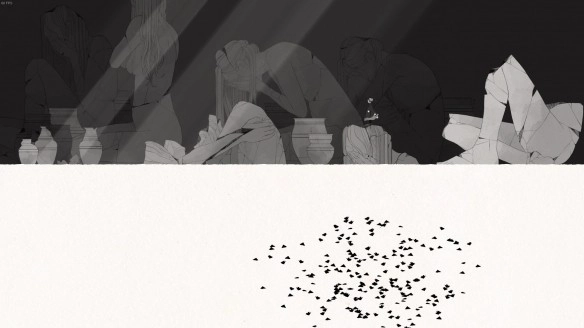 8. 愤怒:在第二章的黑白区域,你需要爬到三个脆弱的雕像上面并砸毁它们。不要对着没有雕像的地方空砸地板,不然在你摧毁它们之前你就会被你自己砸出来的鸟吹飞。(如果不小心砸了,可以退出到菜单-继续游戏读上一个档。)