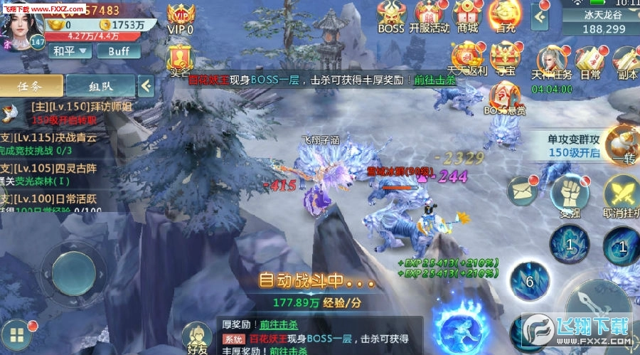 万人仙魔争霸玩法,完美跨服野外激战,擂台单挑王者对决,争分夺秒秘境寻宝、好友组队击杀boss、野外挂机刷怪等多种丰富有趣的战斗玩法带你飞。