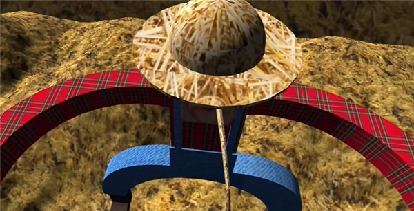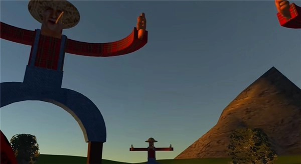 1、进入游戏,我们首先来到这个地方,迅速接近这个跟稻草人一样的东西。