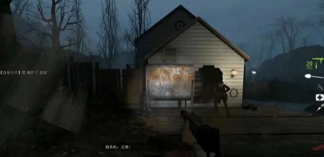 游戏开始时拿起近战武器径直往前走,走到河流所在的位置,从右侧的桥洞穿出去,就能看到一间小房子。