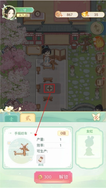 玩家可以点击纺织区域的加号,新建纺织机。