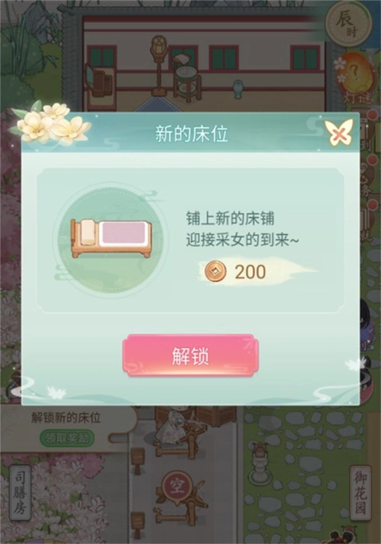 玩家点击床铺区域的加号,就能新建床铺,以便迎接采女的到来。