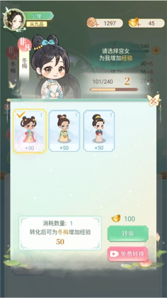 宫女还可以进行升级,消耗低级宫女进行转换升级。