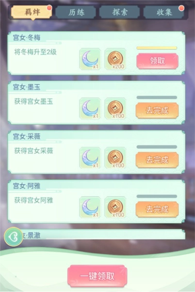 玩家通过选拔宫女、提升宫女等级、解锁故事羁绊等方式,能够解锁羁绊成就并领取丰厚的成就奖励。