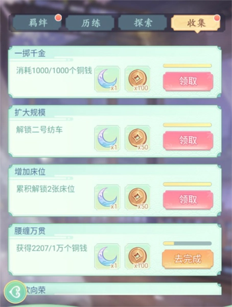 历练成就目前仅包含官职、投壶、抚琴这三个成就任务,完成后即可领取相应的成就奖励。