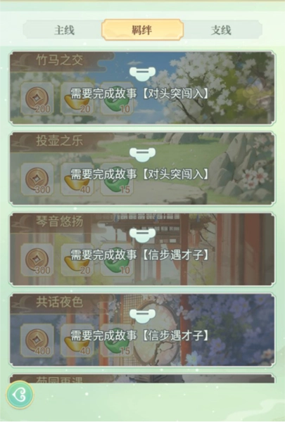 通过完成故事情节即可解锁羁绊,领取羁绊奖励。