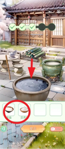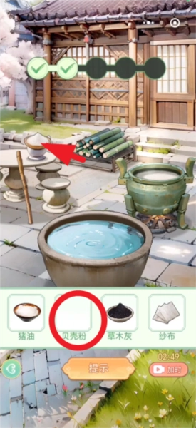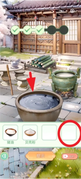 最后将猪油和贝壳粉依次倒入水中搅拌