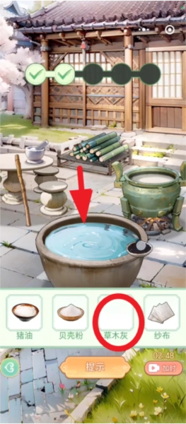 将草木灰倒入水缸当中