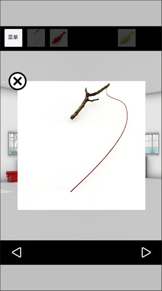 组装鱼竿:小树枝+红线→得鱼竿