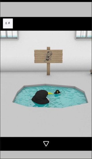厨房电脑鼠标的下方→用红色螺丝刀拧开螺丝→获取两粒电池→将电池装进黄色手电筒→照亮厨房红色箱子的内部→拿到扳手→拧开固定垂钓木板的钉子→得到池塘→企鹅房里的企鹅不见了→转一圈后再去池塘查看→企鹅的脑袋冒了出来