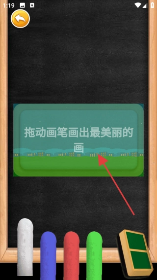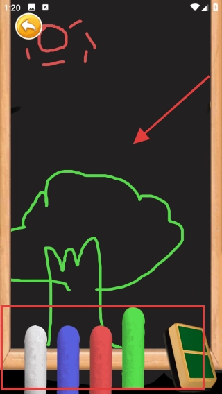 在游戏里,按照提示拖动画笔来创作最漂亮的画作,挑选下方的彩色画笔,在黑板上拖动描绘各类图案,尽情施展你的创意吧。
