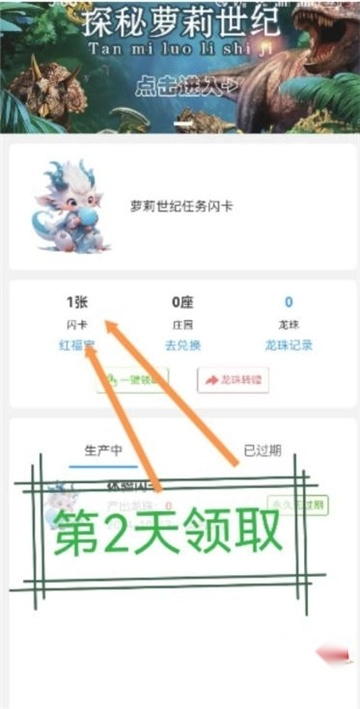 第二天领取闪卡,闪卡可以帮你获取更多龙珠奖励。
