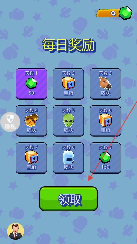 打开每日奖励页面,点击绿色的领取按钮,就能拿到当天对应的奖励,比如宝石、宝箱或者皮肤之类的,为之后的游戏储备资源。