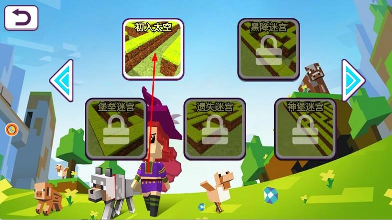 在关卡选择界面,点击初入太空,进入迷宫场景。