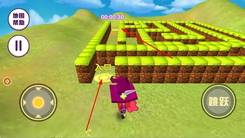 通过左下角的虚拟摇杆来操控角色的移动方向,点击跳跃按钮可以帮助角色越过途中的各种障碍。同时,要根据地图上给出的提示信息,比如入口位置和目标终点的标识,在规定的时间限制内对迷宫进行探索,最终找到出口。