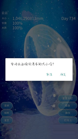当然你也可以把水母换回原来的水缸,只需点击右下角的重置水缸按钮即可,如图所示。