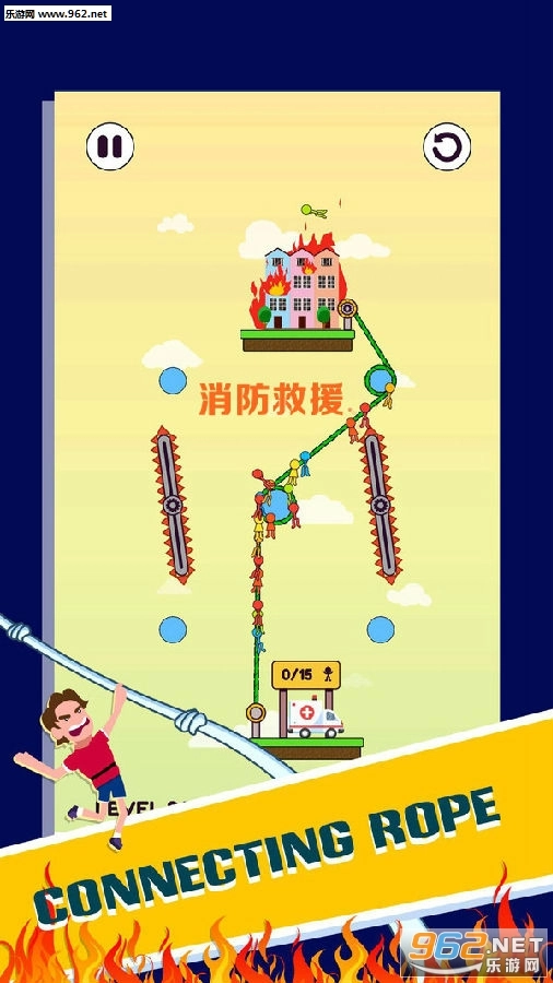 《消防救援安卓版》是一款围绕火灾绳索救援主题打造的闯关类游戏,其卡通画面精致又清新。游戏中,玩家得充分发挥智慧,通过合理地将绳索搭配安装到滑轮上,顺利解救被困人员,完成一关又一关的任务挑战,尽情体验轻松惬意的休闲乐趣。