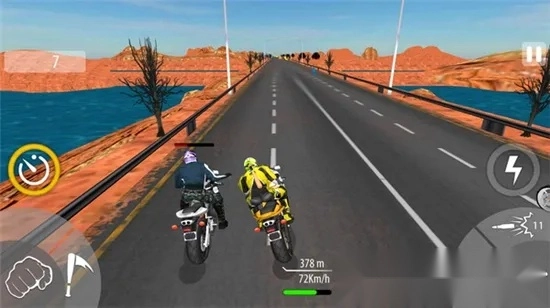 1. 把竞速与格斗巧妙融合,驾驶摩托时用武器和对手展开对抗,尽情体验这种别具一格的战斗竞速乐趣。