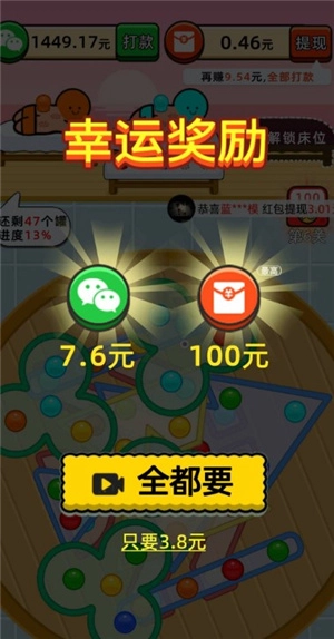 4、过关后会弹出幸运红包,记得打开领取。