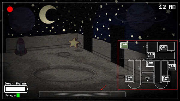 2、进入游戏后,我们会来到一个房间,左下角显示着能量值,能量会随时间不断减少,因此我们得在能量耗尽前离开这里。点击下方的箭头按钮,就能切换画面。
