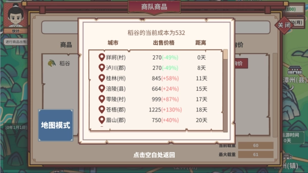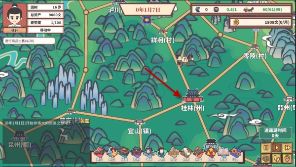 6、抵达目的地后,在当地市场把商品卖掉,这样第一次跑商的流程就走完了。