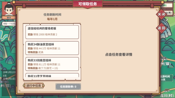 7、我们还可以在城市里接取任务,这样你在跑商的时候还能获得一些额外收入。