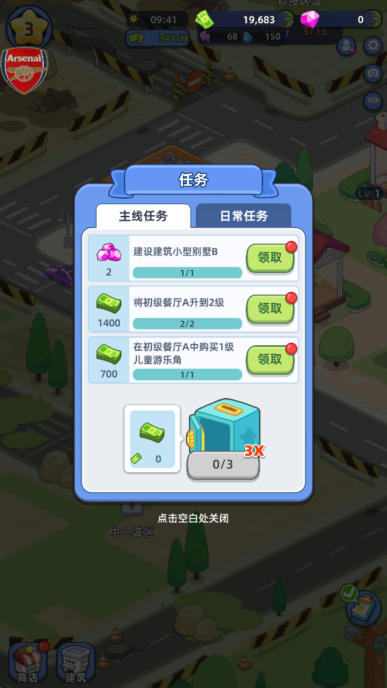 5、当左上角星星数量达到解锁条件时,你将能解锁其他区域,矿大你的城市