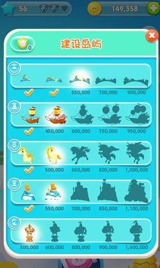 6、岛屿上有不同的装饰物,每个装饰物又有不同的等级,完成所有的装饰后就可以完成该岛屿的建设。
