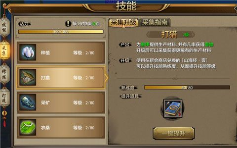 生活技能在角色等级达到35级的时候就可以学习,采集到的初级材料可以合成打造装备的材料,分别是棉布,用于打造项链和帽子。毛皮,用于打造护符和衣服。矿石,用于打造戒指和护肩。丝线,用于打造护腕和鞋子。打造等级高的装备,需要的材料等级也会提高,所对应的生活技能也需要提升等级。生活技能升级需要的书籍可以在帮会用帮贡进行兑换,高等级的书籍还可以通过藏宝图获得。