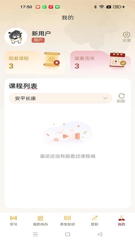 安平长康是一款面向中医养生爱好者的手机学习应用,用户能在线获取海量相关课程资源,还可阅读丰富的养生文章,从而学习更多中医养生技巧;软件内设有学习签到功能,帮助用户掌握每日实时学习情况。