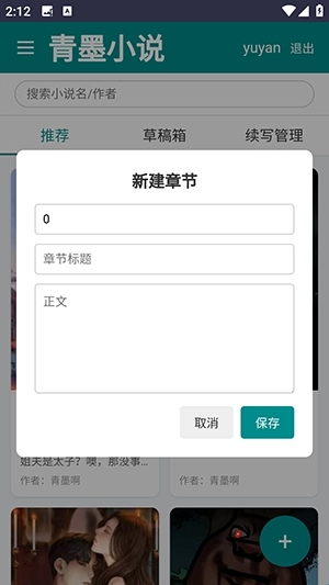 2、进入目标小说页面后,点击“新建章节”就能开启续写模式,可自由添加新内容。