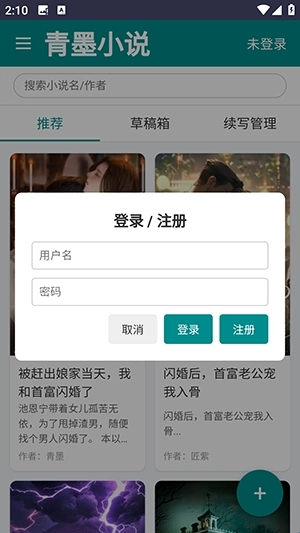 1、并打开青墨小说后,完成账号注册或登录操作。