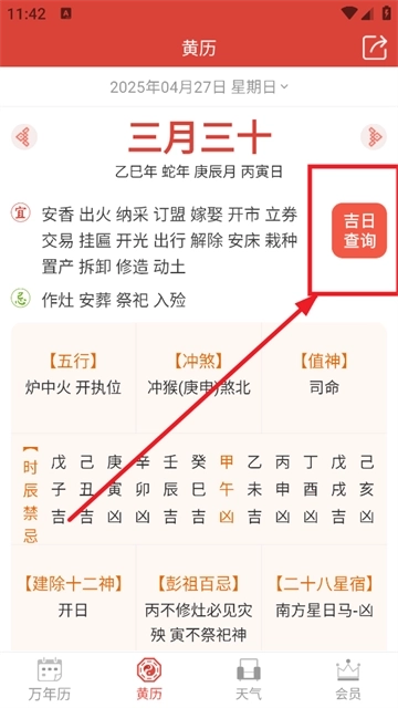 3.接下来我们点击右侧的吉日查询,就能了解最近的吉日是何时了。