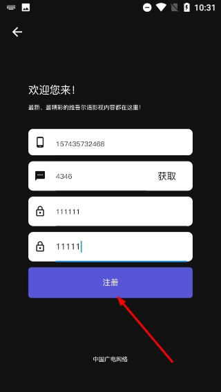 4、进入注册页面后,依次填写【号码】与【验证码】,并设置好密码,随后点击对应的按钮,就能完成账号的注册流程。