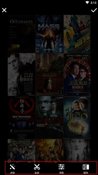 3、选好之后,用户就能根据自身需求自由添加滤镜,还能进行裁剪、调整、翻转等操作设置。